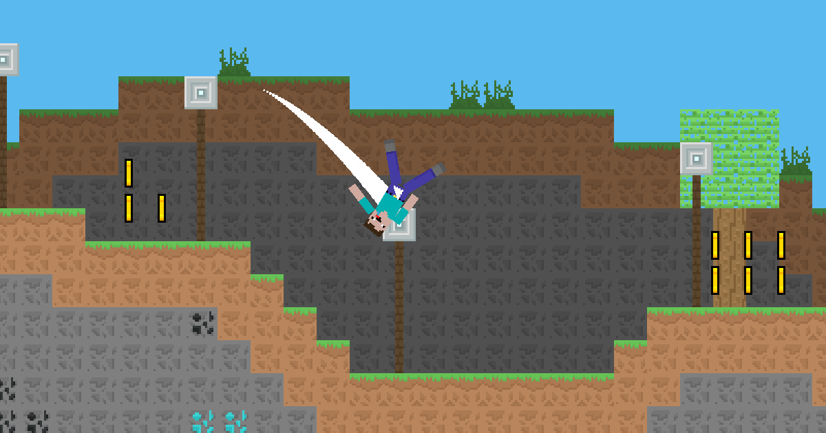 hey noob now you can fly from place to place by throwing a net. Be careful, don't fall on the floor or you will die, very dangerous ground can kill you at any moment. net and jump. Be careful, sharp rotating blades and sharp wooden thorns everywhere you must not touch them. collect the gold on the way and have the most gold.